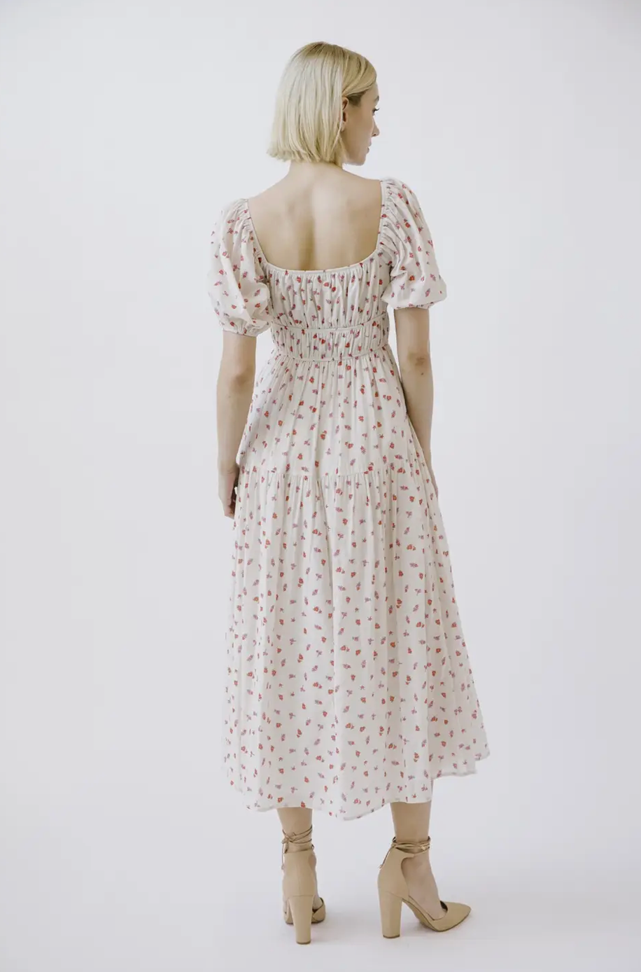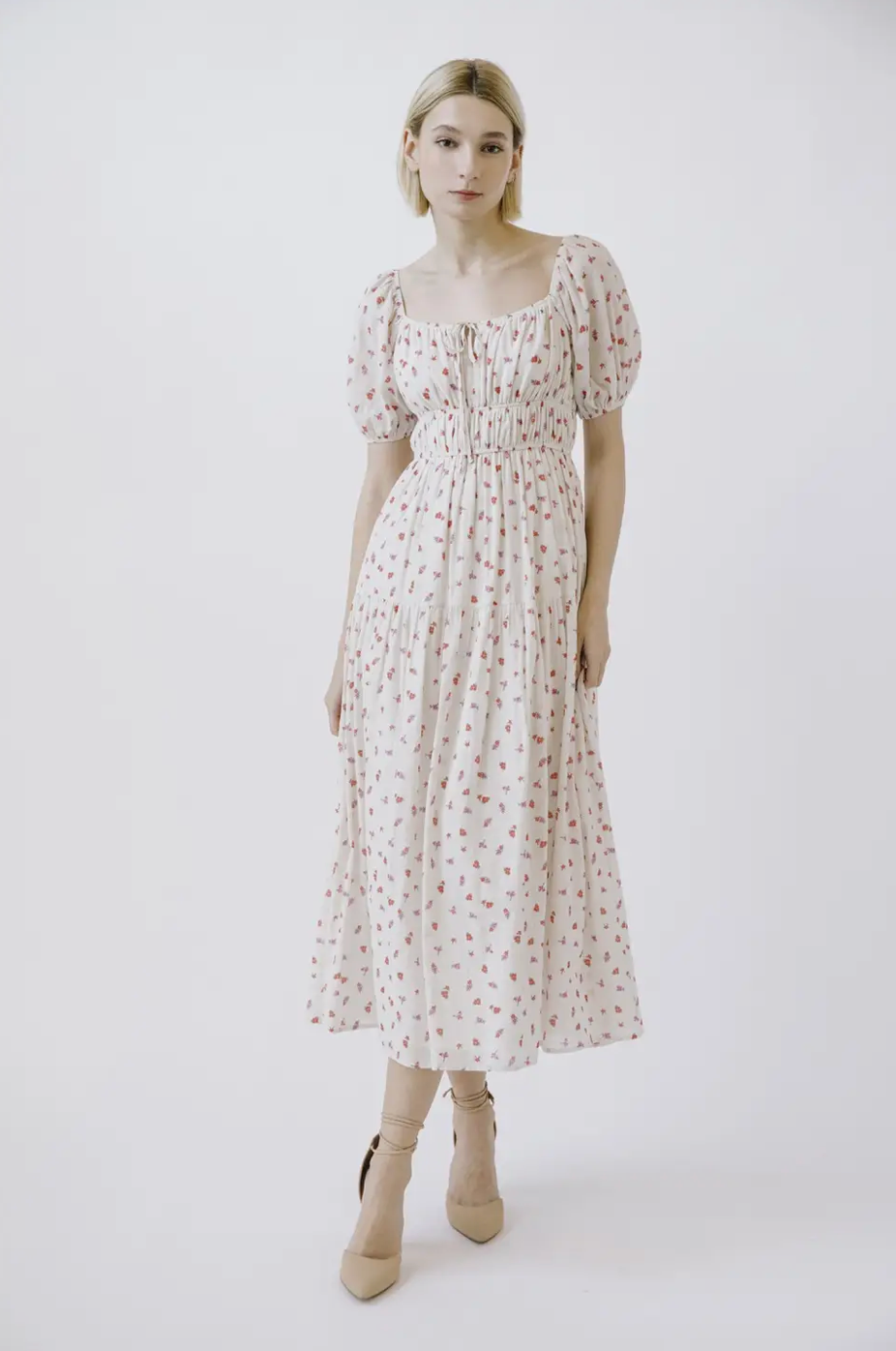 Soft, romantic, and made for twirling ๐ธ The Poppy Dress features a dainty red and pink floral print on a flattering prairie-style silhouette. With a square neckline, puff sleeves, and a sweet center keyhole tie, this midi dress is full of feminine charm. The ruffled hem, cinched waist, and gathered detailing at the waist and back create a beautiful, comfortable fit that moves with you.
